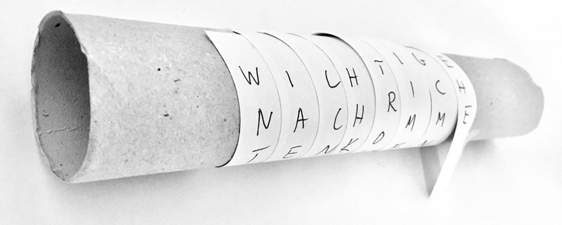 Entschlüssle den Lösungssatz mit der passenden Skytale und notiere ihn auf deinen Zettel.