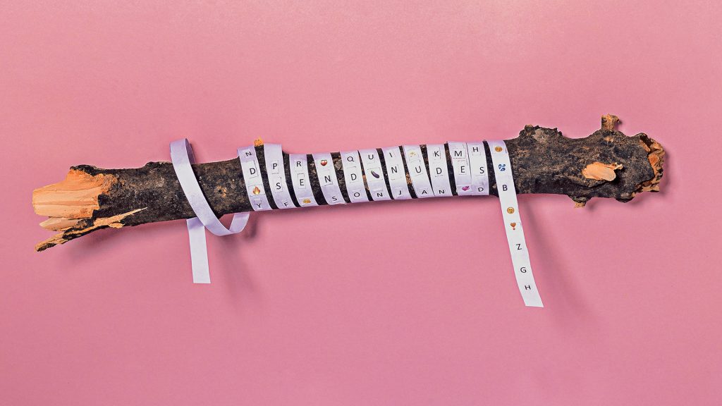 Nur jemand mit einem Stab mit genau demselben Durchmesser kann den Streifen wieder richtig aufwickeln und die Nachricht lesen. Dadurch wurde verhindert, dass Feinde die Botschaft verstehen konnten – eine clevere, aber einfache Geheimtechnik aus der Antike.